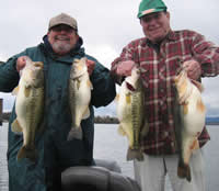 Water Temperature...It is almost as important to find the warmest water temperature available as it is to worry about what and how to fish. Winter and spring are the two seasons when the lake may have many differences in water temps. Our lake sits in a manner that a little look at the map gives huge suggestions at where you might locate warmer water. Two simple facts give big hints about the air temps; cold storms come from the north and warm storms come from the south. As storms move in from the north the cold surface water is blown away towards the north facing shores. In most cases, trees, houses, and tules protect the water on the shore and the wind tends to hit the water quite a ways off shore. Once the storm passes and clear skies return, sun hits these protected areas and they will warm up a little quicker. Looking at Clear Lake, the stretch of Nice to Rodman slough tends to have the warmest water on the north end due to this effect. Consequently, looking directly across the lake the area of Corinthian Bay may be 3 to 5 degrees colder due to its exposure to the North. Also, as a general rule here, due to the deeper water and more rock, the water in the mid section of the lake will typically be warmer by several degrees than the upper lake. This is one of the reasons why we focus on the stretch of bank below Buckingham Point. Much of this bank is protected from the north and catches a lot of sun on clear days. Think about this when you are looking for keys on where to start your search for bass during a tough time of year. |