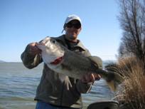 2009 OverviewNow that 2010 is on us it is time to look back on 2009 from an overview perspective and outline the high points and low ones. The number one high point has got to be that we ended 2009 quagga free. There should be no debate over this issue, if they land here the lake will be changed forever and it won't be a positive change. Lack of rain gave us a lower lake level to deal with all year, which took some areas out of play early in the year. All of us had to figure out where the bass repositioned themselves each season. Late spring through the fall we had a challenge presented by algae blooms that we have not seen in years. Algae blooms have been around here at Clear Lake for ages, but not like we experienced this year. It was nasty, ugly, and created all kinds of problems around the lake at resorts and launch ramps. For the most part though, it did not hurt the fishing, it just made the end of day clean up a bigger hassle. With everything going on here, Clear Lake still remains the most productive tournament lake on the West Coast. There is no lake out here that gets the tournament pressure that this one gets and yet still continues to produce an average weight of 3 pounds for fish weighed in during competition. The bass's meal of choice, the threadfin shad, is still virtually a no show with regards to making a come back. While I have heard reports of anglers finding shad and I have witnessed two separate occasions where a grebe came up with what looked like a shad, this prolific little bait fish has not made any significant comeback yet. They have been virtually gone from the lake for the past two years. While the shad are replaced by silverside minnows, and we witnessed a pretty good population of silversides this year, I remain convinced that the better fish rely much more on shad than silversides. The population of larger fish is significantly down as evidenced by tournament results during the year, results of guides this year, and observations by the local regulars who fish the lake weekly. Very few double digit bass were weighed in during competition this year, and especially in comparison with the years of 2004 through 2006. A number of tournament big fish awards went to 7 and 8 pound fish this year. Looking at my numbers for this year against last year the number of 5 pound and heavier fish was down almost 50%. Many anglers I have spoken with report the same theme, that when they have landed a big fish it was not in good condition, looking thin and it should have weighed more than it did, and that was consistent throughout the year. Our numbers for the year of 4 pound fish showed 127 in 2009 against 161 for 2008, a decrease of about 21%. Fish 5 pounds and over were down from 153 in 2008 to 76 in 2009, a decrease of about 50 %. The flip side of the lower numbers of fish 5 pounds and larger is that there is a great population of fish in the 2.75 to 3.5 pound range. These fish represent the replacement class of fish prepared to come through the system. I also think these are the size fish that best make a living off of the silverside minnows. There was a very good spawn with juvenile bass showing up this fall all over the lake. Overall, fishing pressure was down significantly in 2009, not tournament dates, just the number of boats each week in general. I do not pretend to be a biologist and I am certainly not the only expert on Clear Lake but I do feel that my numbers are true and that my field observations are accurate and match up well with what my peers are seeing as well. Ken Ban with the big fish of the year, a solid double digit fish that bucked the trend of most of the big fish we caught this year, it was thick, stocky, and full.a real Clear Lake Trophy! Fell to a drop shotted worm.